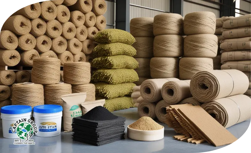 High-quality jute, jute stick charcoal powder, sesame seeds, and particle boards.